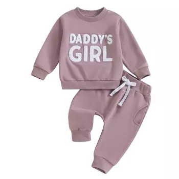 Baby Girl 2Pcs Fall Outfit Set – Fuzzy Embroidered Sweatshirt & Pocket Pants