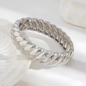 Hip-Hop Retro Metal Bangle – Thick Thread Texture Gold & Silver Bracelet