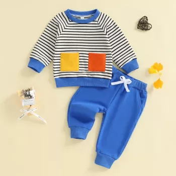 Toddler Boys 2-Piece Outfit – Striped Pullover & Solid Pants Set
